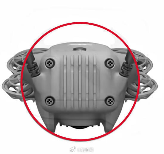 Percebemos que na frente existem dois pequenos retângulos escuros, onde provavelmente o primeiro pórtico ficará o sensor anti colisão frontal com tecnologia LiDAR, mas pode ser que use o sensor ToF¹. O retângulo da direita poderá ser uma pequena tela para exibir o modo de voo selecionado, como no DJI Flip.